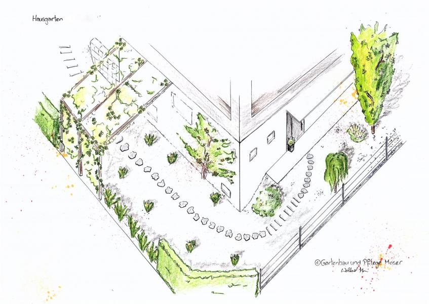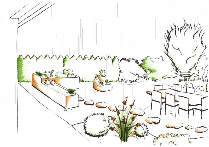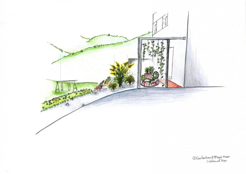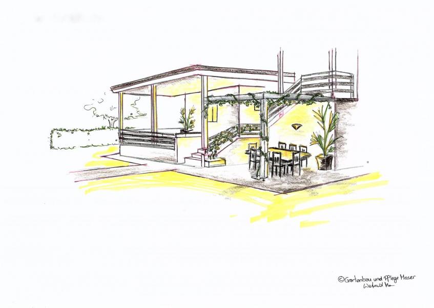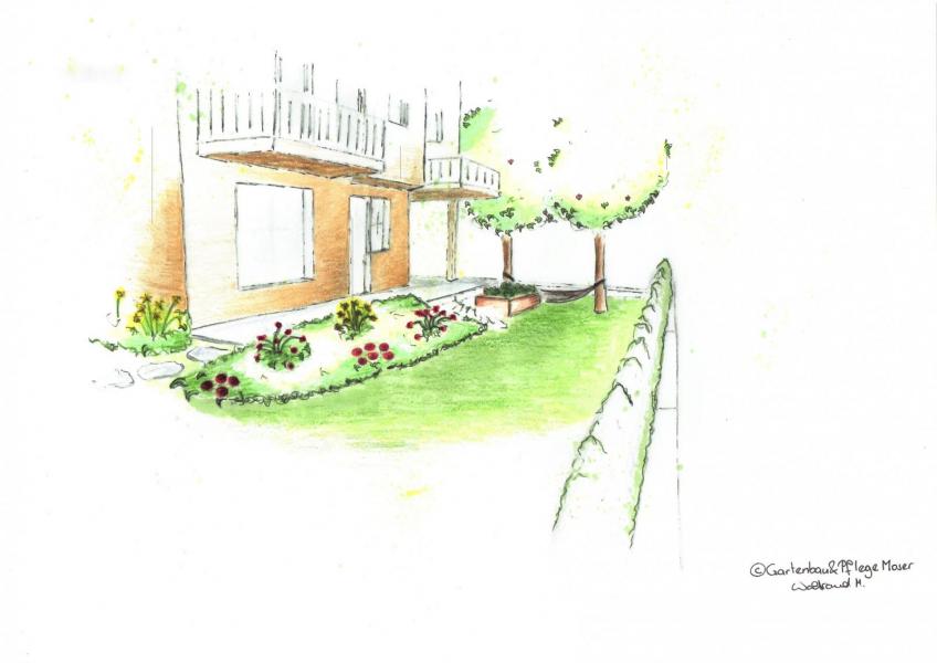 Darum fertigen wir Individuell handgezeichnete Skizzen damit Sie Ihr `Grünes Wohnzimmer`schon vorab begutachten können.