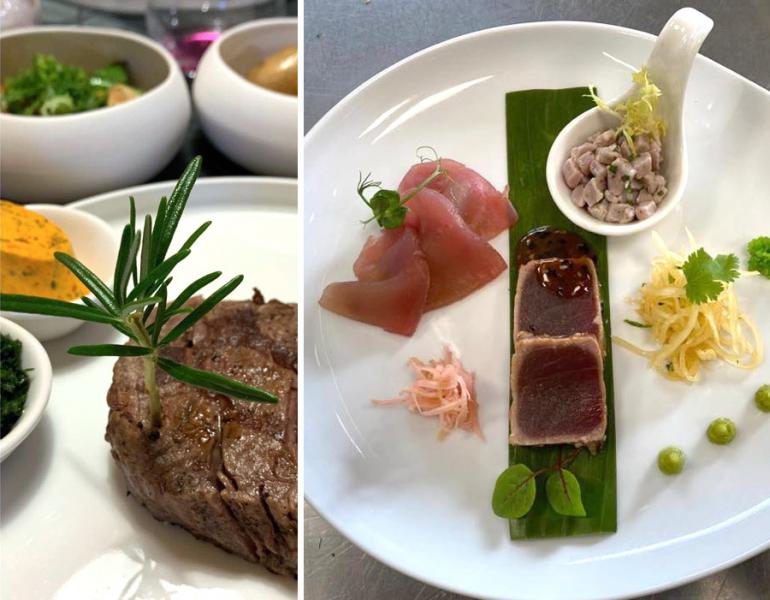 Ein feines Tartar vom hausgebeizten Lachs, ein pikantesHirschsülzerl, ein saftiger Beinschinken, wunderbar geschmorte Kalbsbackerl, ein zartes Filetsteak vom Simmentaler Rind und zum süßen Schluss ein paar verführerische Variationen von der exquisitenSchweizer Valrhona Schokolade oder eine original Pink Bananabrûlée – nur einige Gustostückerl aus unserem reichhaltigen Catering-Angebot. Alles tip-top frisch und direkt vor Ort zubereitet.