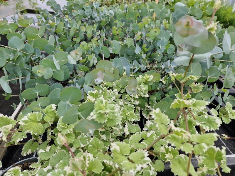 Weihrauch, Mühlenbeckia, Kartoffelblumen, Silverfalls, Ziergräser, Hebe, Green Globe, Eukalyptus, Asparagus, Buntnesseln