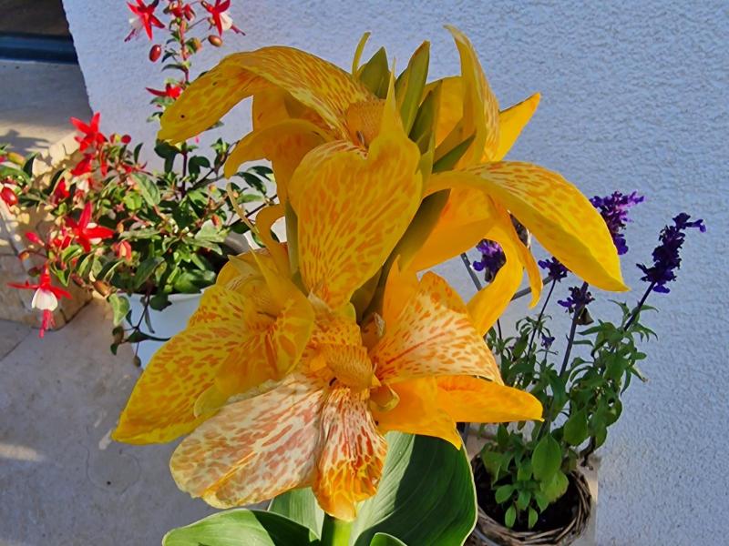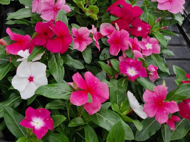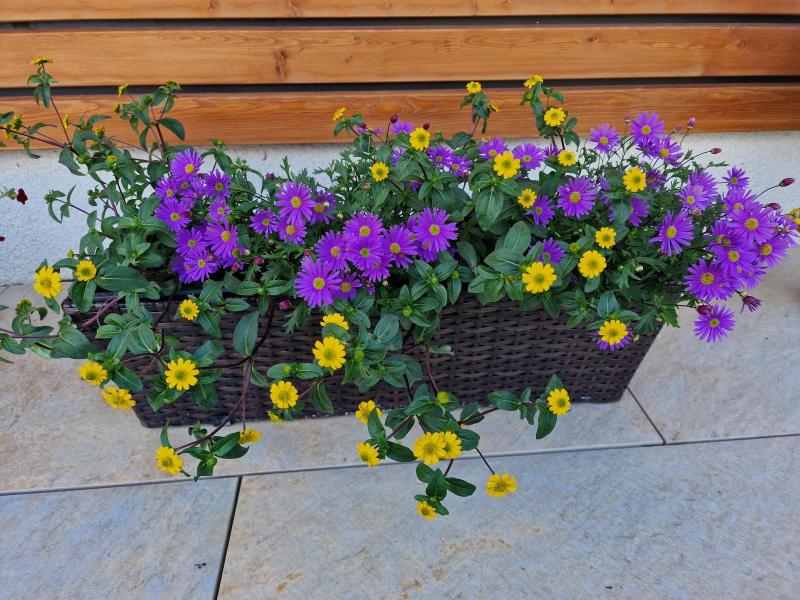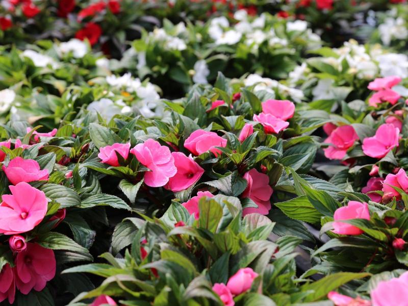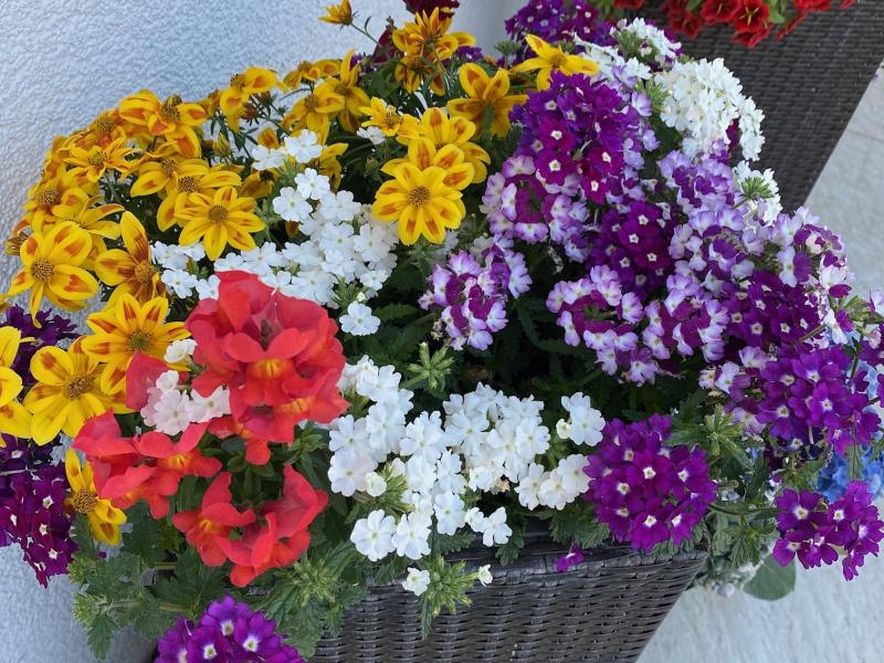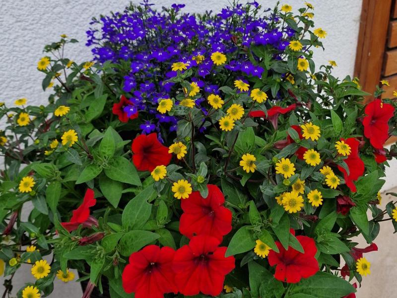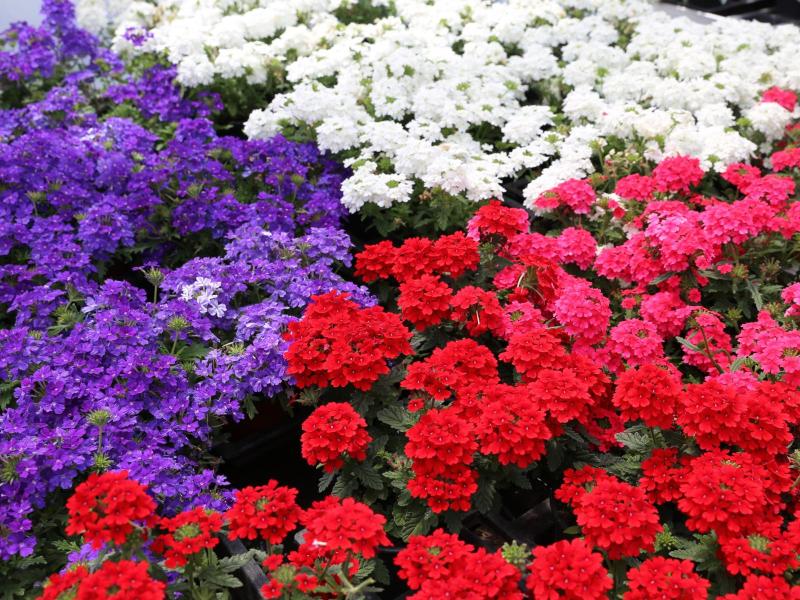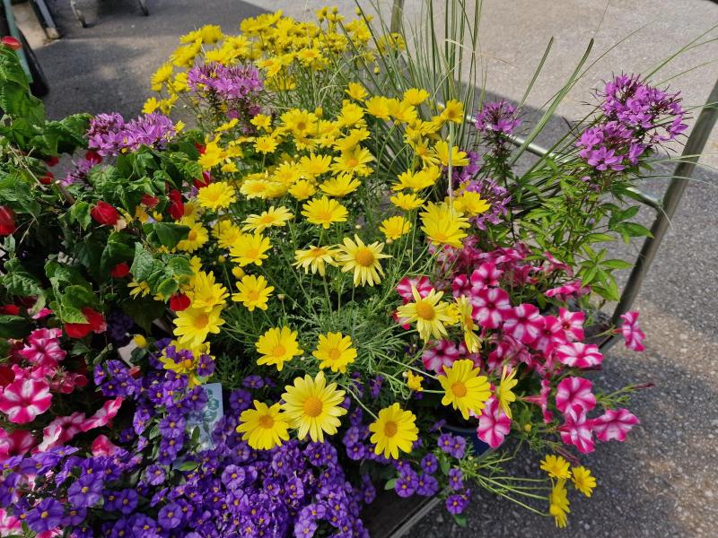 Atztekengold (Sanvitalia), Mittagsblumen (Gazanien), Vanilleblumen, Sonnenhut, Sonnenblumen, Fächerblumen, Wandelröschen (Lantana camara), Dipladenia (Mandevilla), Neuguinea Lieschen (Impatiens Neuguinea), Angelface, Spinnenblumen (Cleome spinosa), Sonnenbegonien (Sunpleasure), Golddust (Mecardonia), Ziersalbei, Wunderrad, Schwarzäugige Susanne (Thunbergia), Männertreu (Lobelien), Steinkraut (Alyssum), Salvien, Gänseblümchen, Strohblumen, Jasmin (Solanum), Enzian, Hortensien (Hydrangea), Rosen, Oleander, Eisenkraut (Venosa), Diascia, Zimmerimmergrün (Cora), Biedenz, Echinazea, Euphobia, Fuchsien, Verbenen, Zauberglöckchen/Millionbells (Calibrachoa), Hortensien, Plumbago, Clematis, Schmucklilie, Canna
