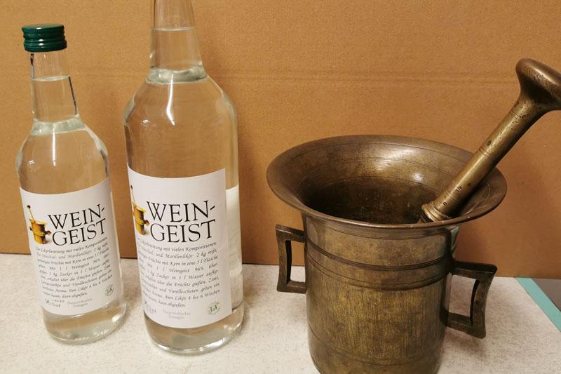 Weingeist zur Likörbereitung in verschiedenen Gebinden