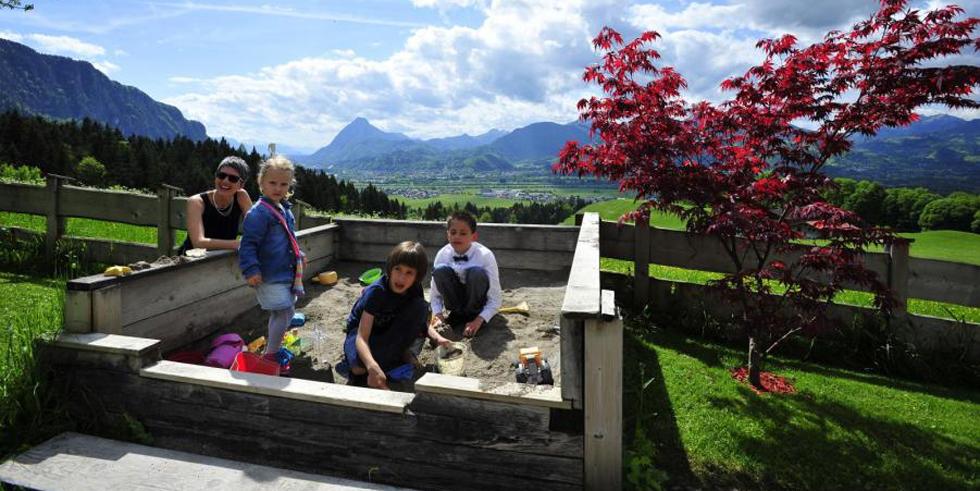 Willkommen auch auf unserer sonnigen Terrasse & dem Abenteuerspielplatz!