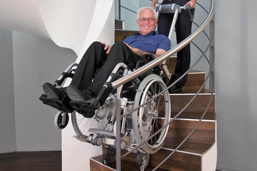 Treppen aller Art können mit dem scalamobil sicher und mit geringem Kraftaufwand überwunden werden. Das scalamobil funktioniert selbst auf sehr engen Wendeltreppen jeden Materials bis zu einer Stufenhöhe von 20 cm.