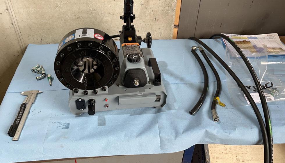Dank unserer mobilen Hydraulikschlauchpresse können wir Hydraulikschläuche direkt vor Ort anfertigen und wechseln.