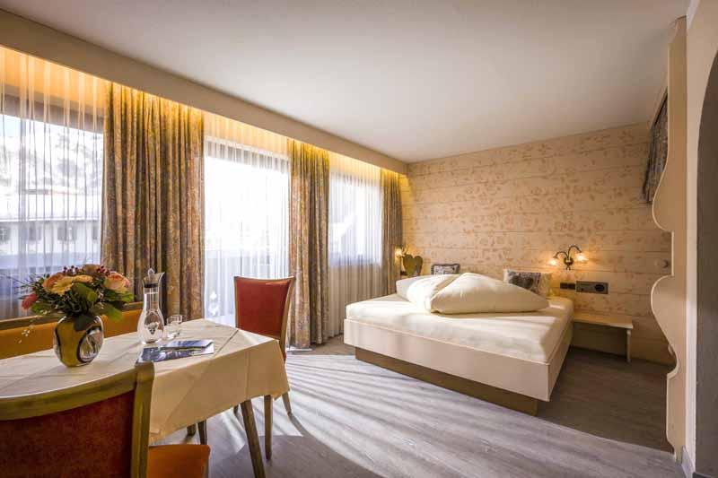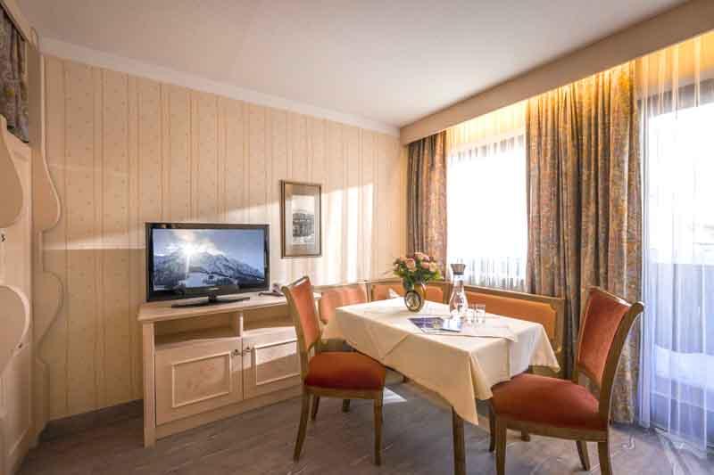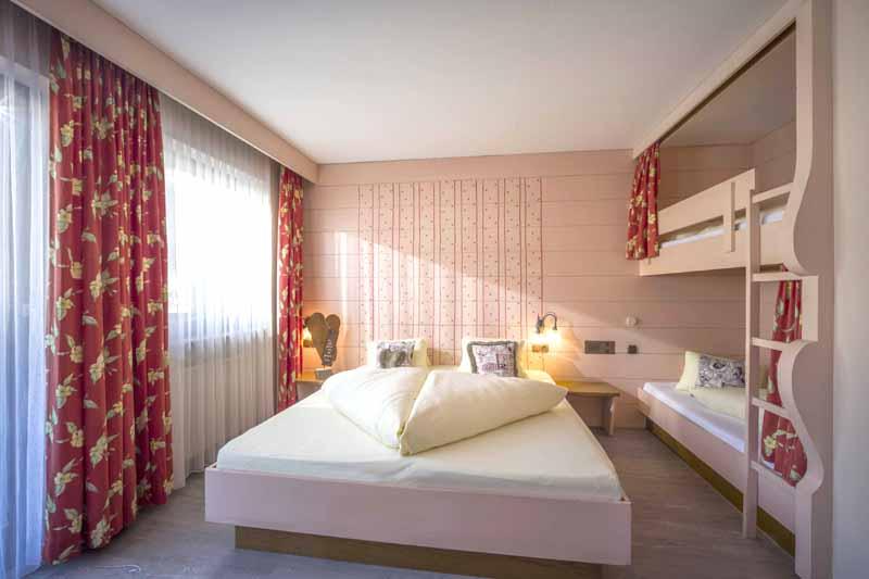 37 qm für 2-4 Personen: Wohn-/Schlafraum mit Doppelbett und Stockbetten, Essecke, Vorraum mit Küche, Badezimmer und Balkon.
