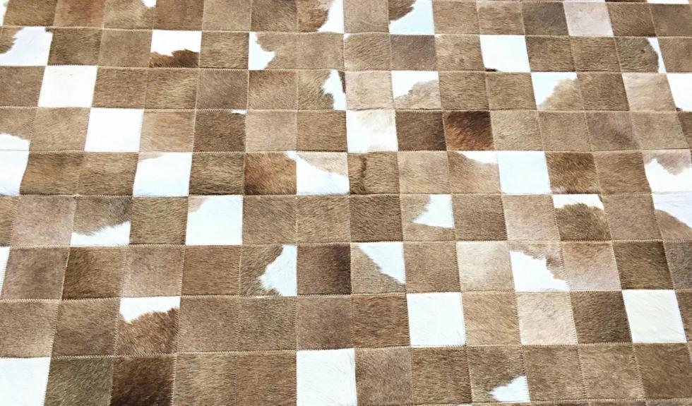 Zusammengenähten Vierecke - 100 % Kuhfell und auf der Rückseite gepolstert.